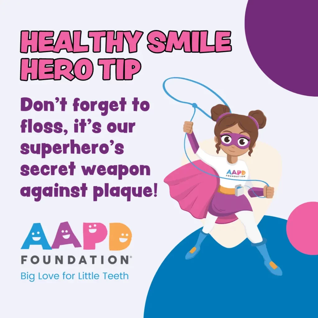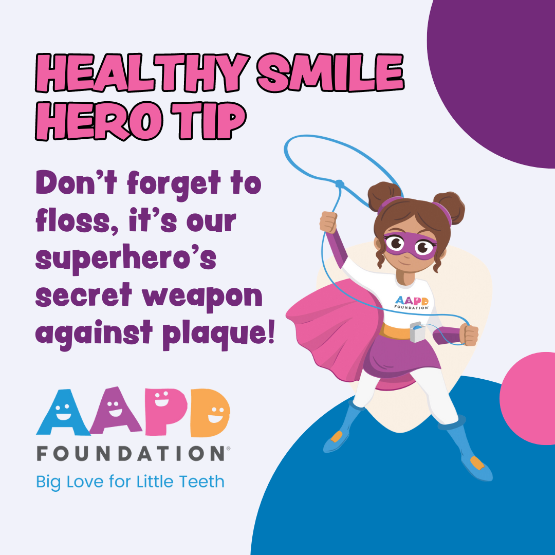 Floss is the secret weapon the Healthy Smile Hero uses to keep plaque at bay. Make it yours, too!