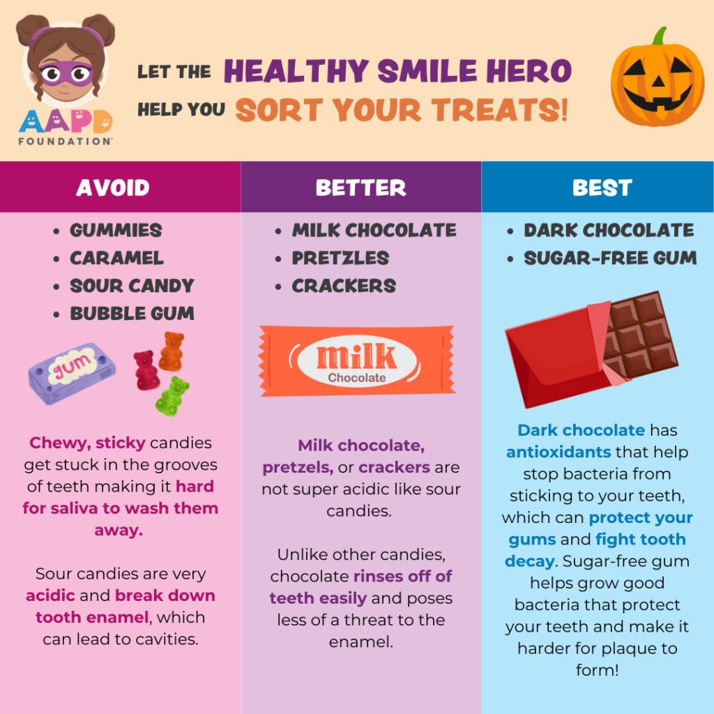 Don’t let candy be the villain this Halloween! Check out our reccs for a tooth-friendly spooky season. #HealthyHalloween #HealthySmileHeroes