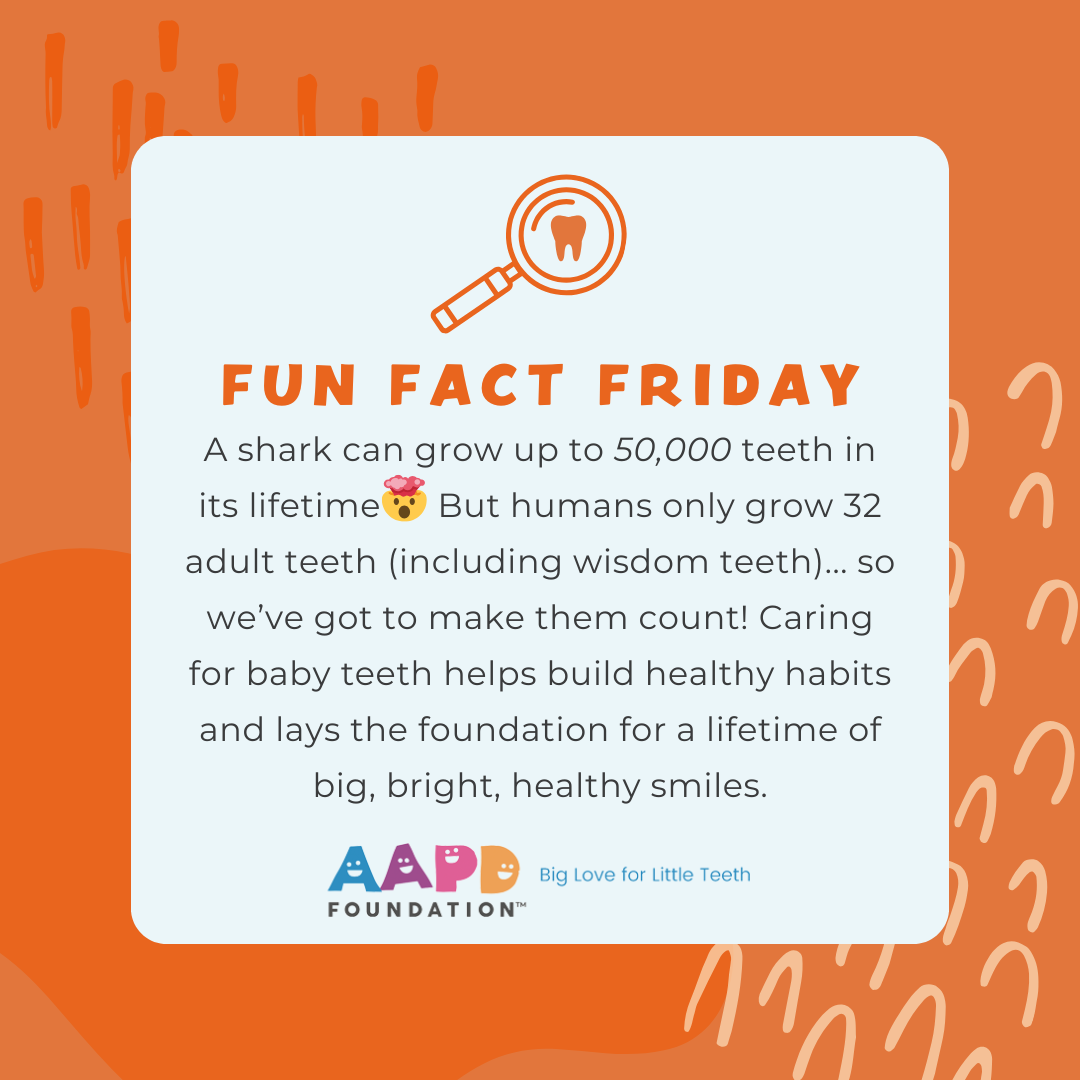 Sharks may get 50,000 teeth, but we only get 32—so let’s make them count! 🦈✨ Start good habits early for a lifetime of big, bright smiles. #HealthyHabits #FunFactFriday