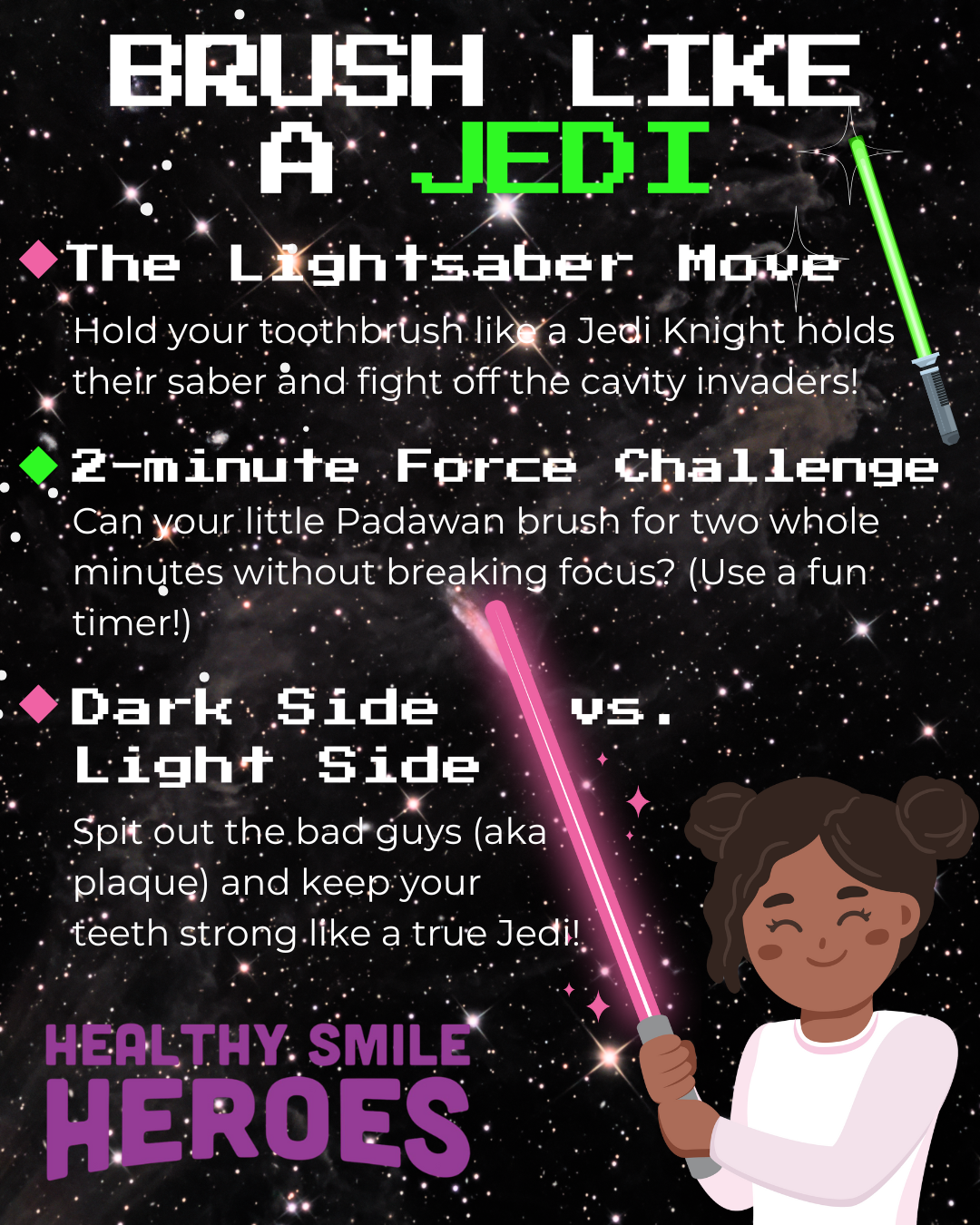 Brushing doesn’t have to be a losing battle. Turn it into an epic Jedi training session instead! 🦷⚔️ May the floss be with you. #ParentingTips #ParentHacks #HealthySmileHeroes