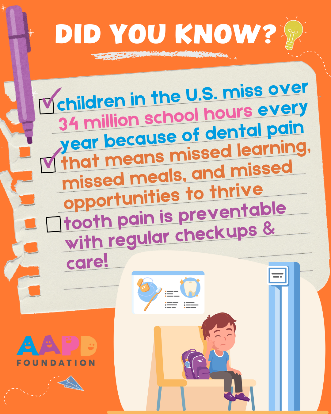 Tooth pain isn’t just uncomfortable—it’s keeping kids out of the classroom. Getting children the dental healthcare they need is imperative to their development. Every kid deserves to smile, learn, and grow, pain-free.