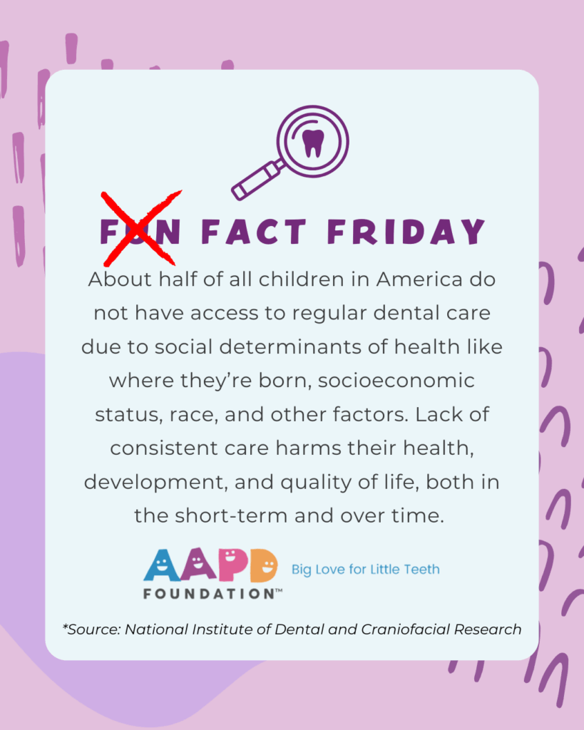Many folks think that most kids in the U.S. are able to see a dentist – but it’s not true! Around half of kids in America do not have access to dental care. Keep your kiddo’s smile healthy and strong by brushing, flossing, and visiting the pediatric dentist twice a year.