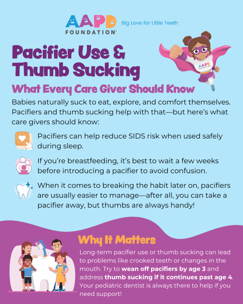 Habits for healthy smiles start young! Keep an eye on pacifier and thumb sucking to protect your child’s teeth as they grow.