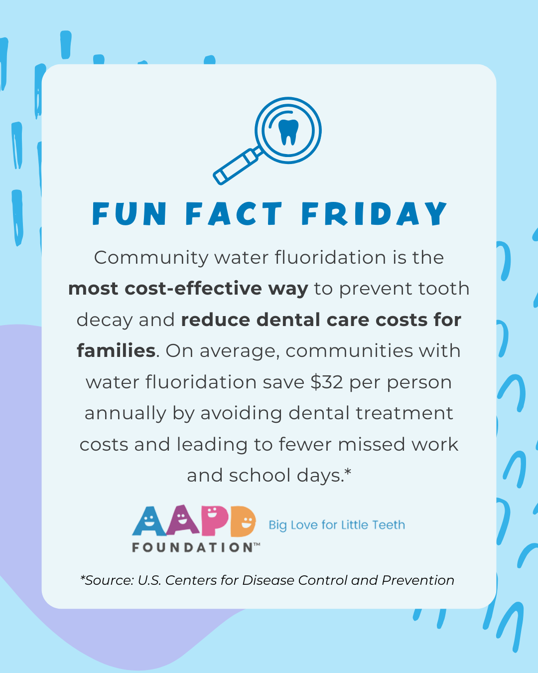 Some folks in the U.S. believe that community water fluoridation is too expensive – but the opposite is true! Fluoridating community water is the most cost-effective way to reduce dental care costs for families. Share this #funfact to combat misinformation.
